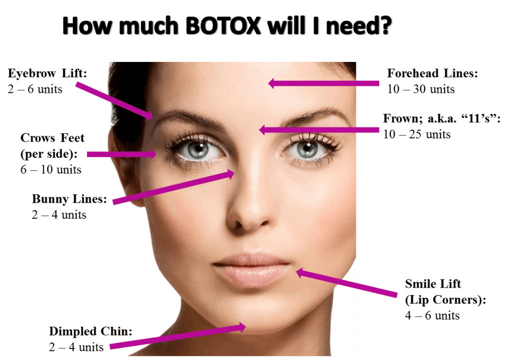 will relax muscles to prevent and smooth wrinkles between brows, around eyes, forehead lines, gummy smile. upper lip flip (to show more lip appearing bigger), raise corners of mouth so not turning downward like a frown, chin dimpling and crease, chewing muscle to slim face and help prevent TMJ or grinding at night, neck bands, and more. Botox also helps prevent and decrease migraines and headaches. Results typically last 3-6 weeks, over time less frequency may be needed as muscles weaken.